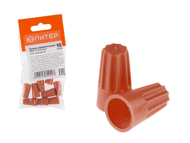 Зажим соединительный изолирующий СИЗ-3 (5,5 мм2) (10 шт) Юпитер (оранжевый) (ЮПИТЕР)