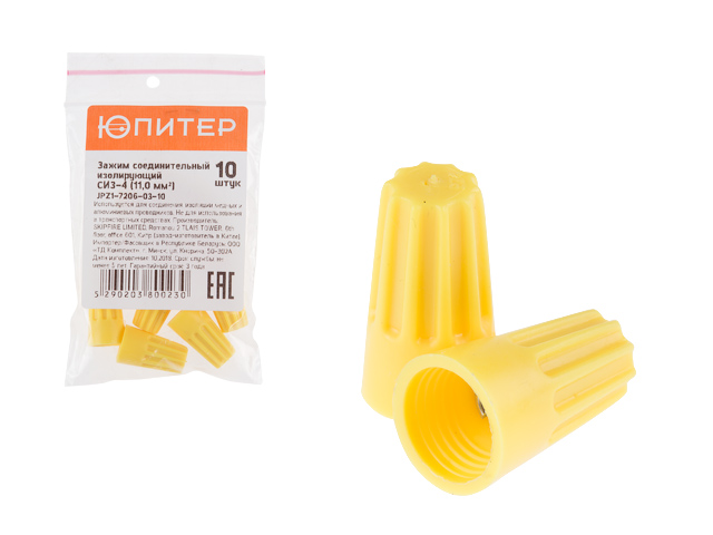 Зажим соединительный изолирующий СИЗ-4 (11,0 мм2) (10 шт) Юпитер (жёлтый) (ЮПИТЕР)
