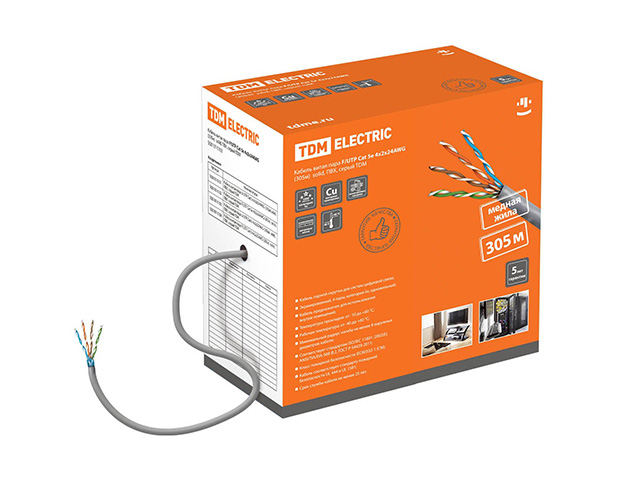 Кабель витая пара F/UTP Cat 5e 4х2х24AWG (305м) solid, ПВХ, серый TDM