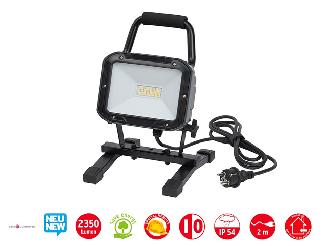 Прожектор светодиодный мобильный 30 Вт 5700K IP54, с кабелем 2м, ML DN 4006 S Brennenstuhl (2350Лм, белый свет)