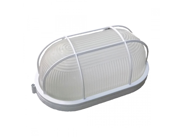 Светильник овал/белый/решетка 100Вт, IP54 (НБП 04-100-002) Юпитер (1хЕ27, банник) (ЮПИТЕР)