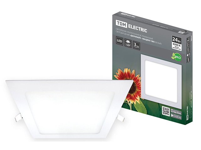 Светильник ультратонкий встраиваемый светодиодный "Даунлайт" квадрат СВО (белый) 24 Вт 6500К TDM купить в Минске: