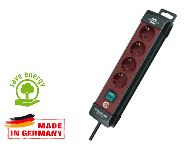 Удлинитель 1.8м (4 роз., 3.3кВт, с/з, выкл., ПВС) черный/бордовый Brennenstuhl Premium-Line (провод 3х1,5мм2, сила тока 16А, с/з - с заземляющим конта