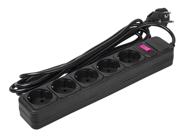 Удлинитель / фильтр сетев. 3м (5 роз., 2.2кВт, с/з, выкл., ПВС 3х0,75) ФАЗА (ФАZА)