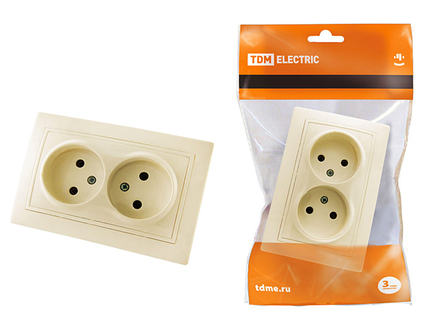 Розетка двойная 2П 10А 250В сл. кость "Таймыр" TDM купить в Минске: