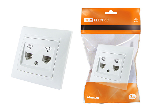Розетка двойная телефонная RJ11 белая "Лама" TDM