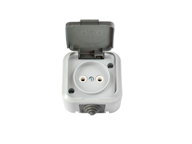 Розетка 1-ая (открытая, б/з, брызг. защ.) серая, Пралеска Аква, Bylectrica (IP54 пылебрызгозащищенные)