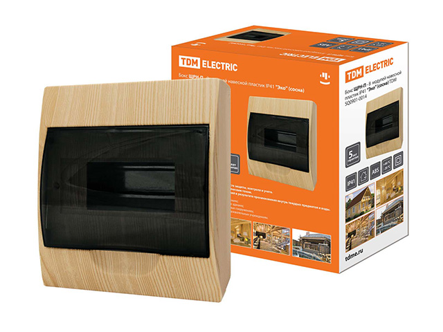 Бокс ЩРН-П-8 модулей навесной пластик IP41 "Эко" (сосна) TDM