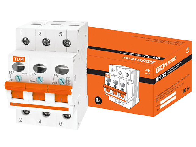 Выключатель нагрузки (мини-рубильник) ВН-32 3P 16A TDM