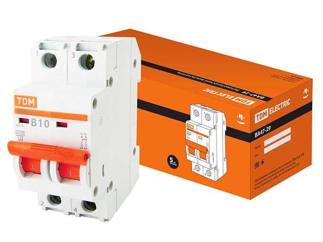 Автоматич. выключатель ВА47-29 2Р 10А 4,5кА х-ка В TDM