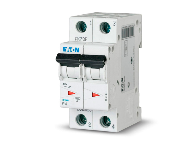Авт. выкл. Eaton PL4 2P 32А, тип С, 4.5кА, 2M (АВТ. ВЫКЛ. PL4 2P 32А, ТИП С, 4.5КА, 2M)