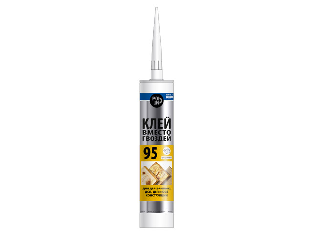 Клей монтажный POINT "Клей вместо гвоздей 95", 280мл (прозрачный, для деревянных, ДСП, ДВП и ОСБ конструкций)