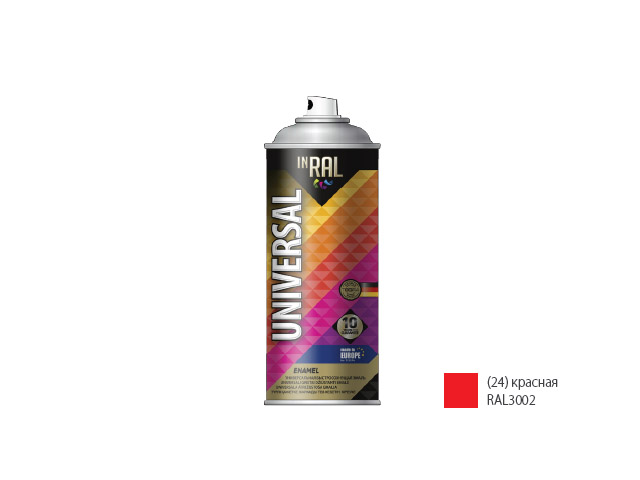 Краска-эмаль аэроз. универсальная красный INRAL 400мл (3002) (Цвет красный глянц.)