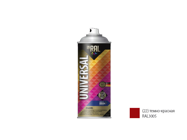 Краска-эмаль аэроз. универсальная темно-красный INRAL 400мл (3005) (Цвет темно-красный)