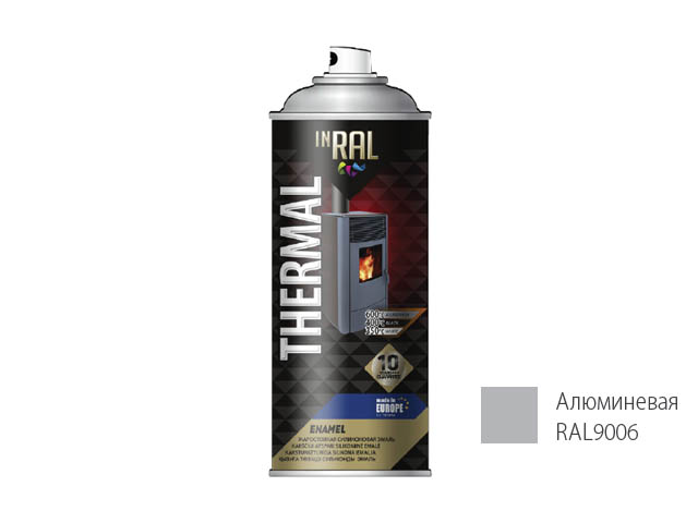 Краска-эмаль аэроз. термостойкая силиконовая алюминиевый INRAL 400мл (9006) (Цвет алюминиевый мат.)