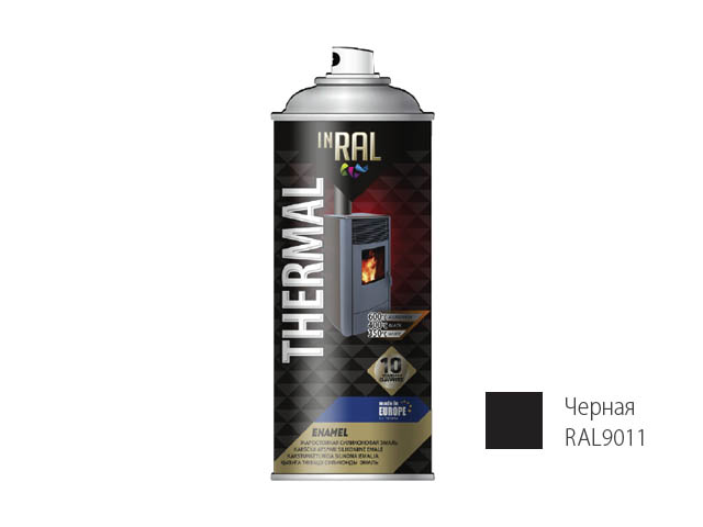 Краска-эмаль аэроз. термостойкая силиконовая черный INRAL 400мл (9011) (Цвет черный мат.)